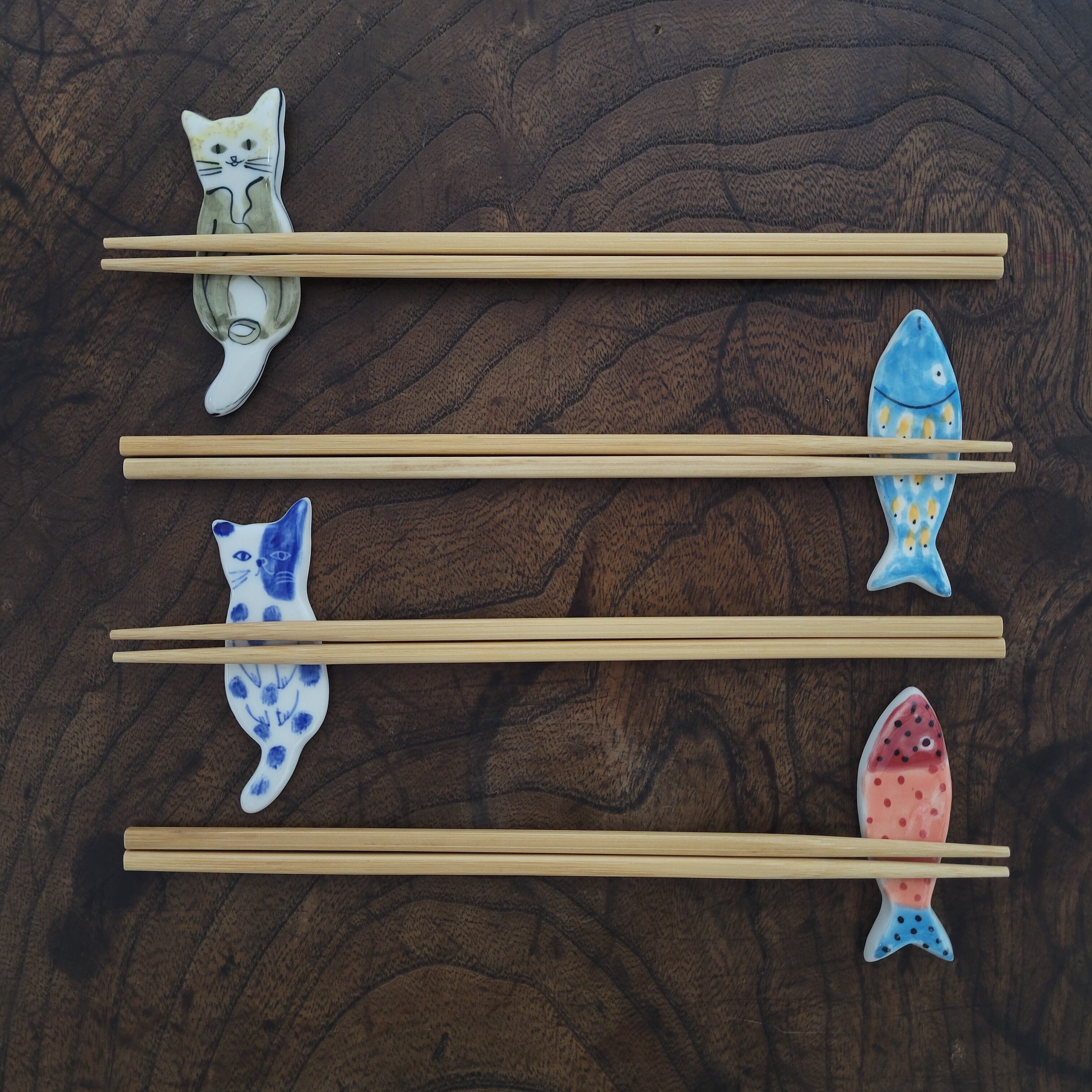 表情や服装がとても素敵なネコの箸置きです。
